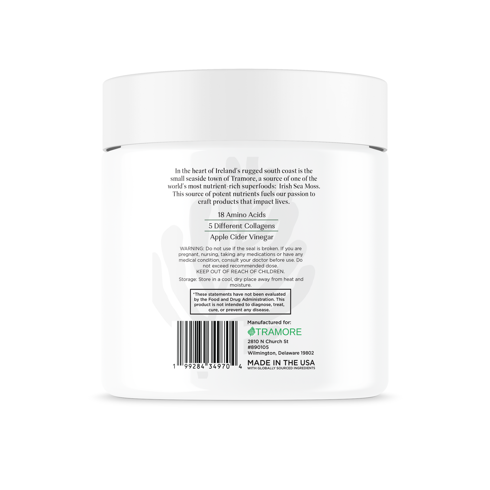 At Tramore, we believe in the power of nature to fuel your wellness journey. Carefully blending the finest ingredients like Irish Sea Moss, Collagens, Amino Acids, and Organic Apple Cider Vinegar, we crafted a supplement that supports your health from the inside out. Enjoy a nourishing boost that’s both effective and delicious—because your well-being deserves the best.